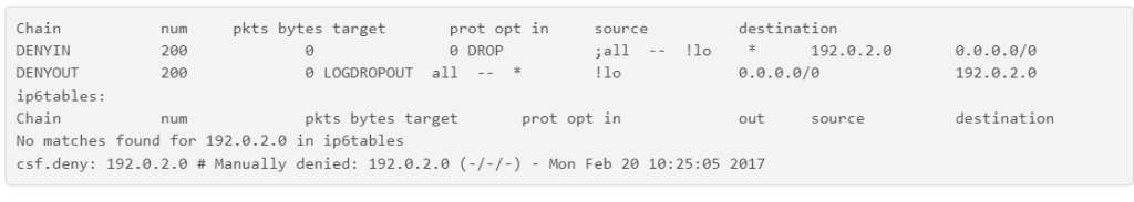 csf -g 192.0.2.0